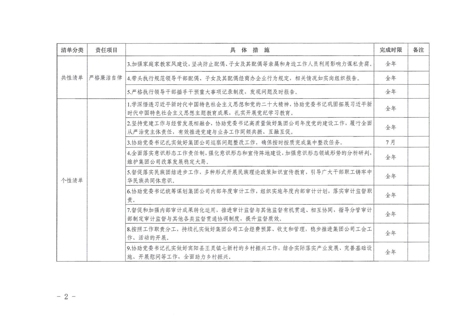 領(lǐng)導班子其他成員2024年度黨風廉政建設(shè)“一崗雙責”清單(二)