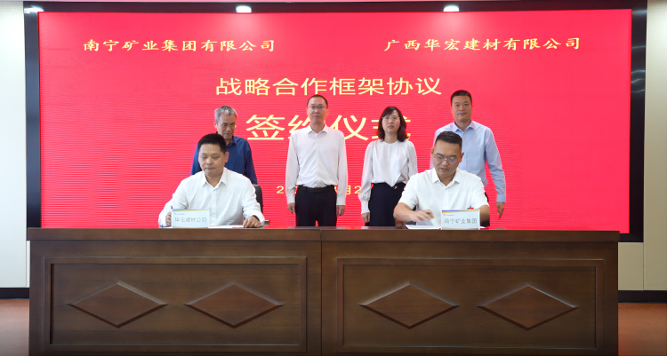 南寧礦業(yè)集團黨總支書記、董事長張二毛與華宏建材公司黨委書記、董事長莫少政代表雙方進行簽約,雙方將圍繞“產(chǎn)業(yè)協(xié)同、鏈式發(fā)展”核心理念,致力構(gòu)建全鏈條協(xié)同機制,打造建材產(chǎn)業(yè)融合發(fā)展新機制。
