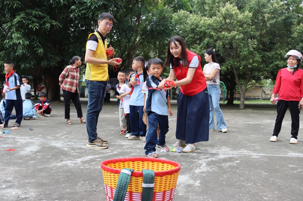 課堂結(jié)束后,在志愿者們的帶領(lǐng)下,孩子們來到教室外參與拋繡球、投壺、套圈等民族傳統(tǒng)體育項目。志愿者與孩子們分組協(xié)作、相互配合,完成了一項項挑戰(zhàn),激勵孩子們享受運動的快樂,觀察到、感受到生活中的民族藝術(shù)的魅力,豐富了文化生活和情感體驗。
