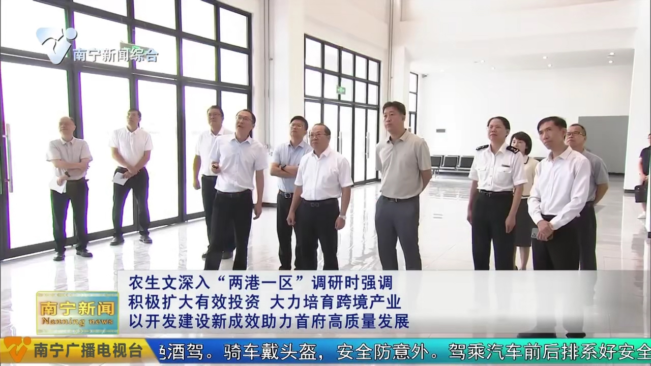 7月8日,自治區(qū)黨委常委、市委書記農(nóng)生文到“兩港一區(qū)”調(diào)研開發(fā)建設(shè)情況,強調(diào)要深入貫徹落實習(xí)近平總書記關(guān)于對外開放的重要論述和關(guān)于廣西工作論述的重要要求,進一步樹牢開放發(fā)展理念,堅持貿(mào)易先行、貿(mào)工結(jié)合、以貿(mào)促工,充分發(fā)揮空港、鐵路港、公路港協(xié)同聯(lián)動和綜合保稅區(qū)政策優(yōu)勢,積極擴大有效投資,暢通跨境物流通道,大力培育跨境產(chǎn)業(yè),不斷開創(chuàng)“兩港一區(qū)”開發(fā)建設(shè)新局面,為加快建設(shè)面向東盟開放合作的國際化大都市注入強勁動力。