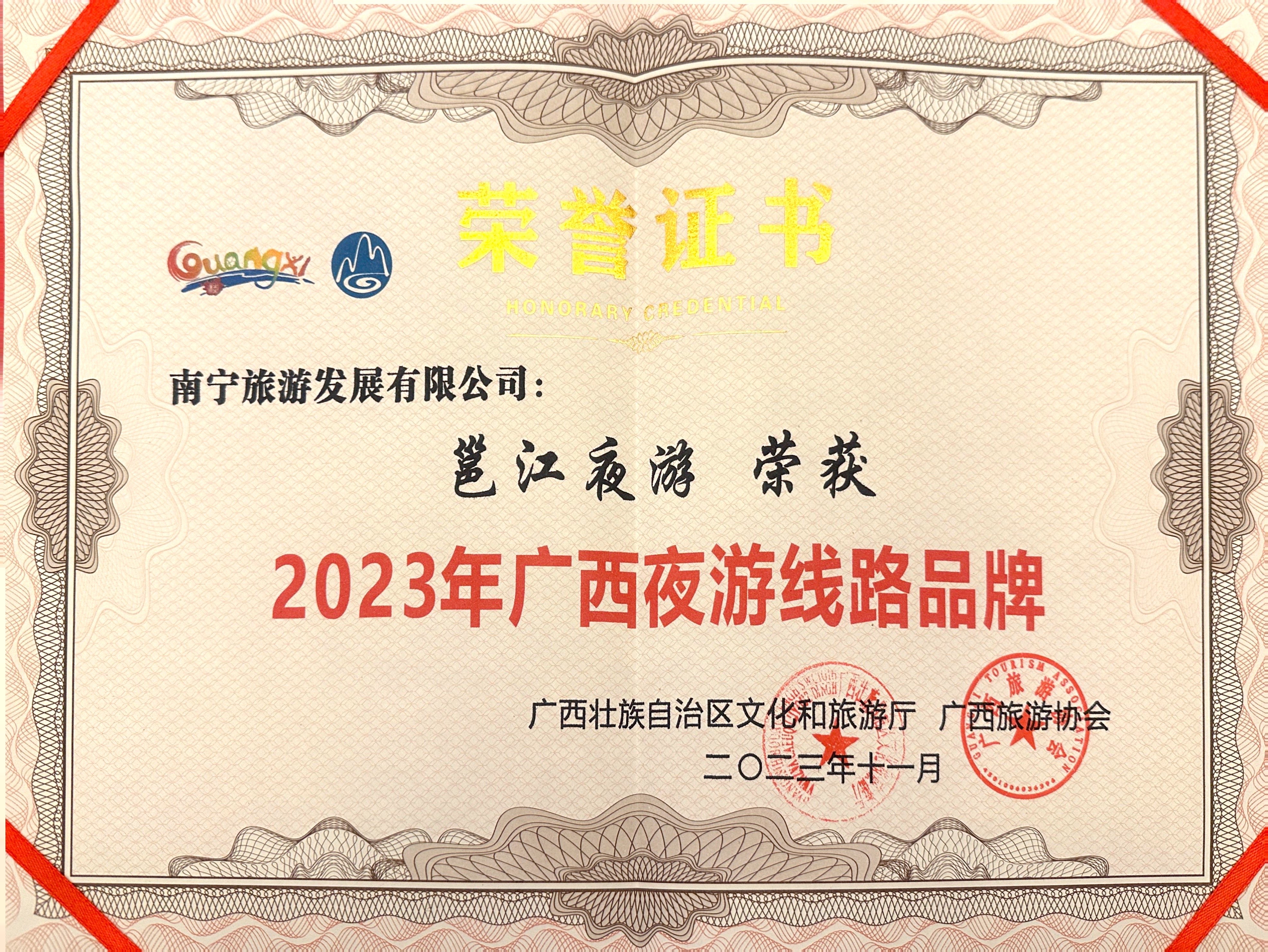 喜報!邕江夜游榮獲“2023年廣西夜游路線品牌”稱號