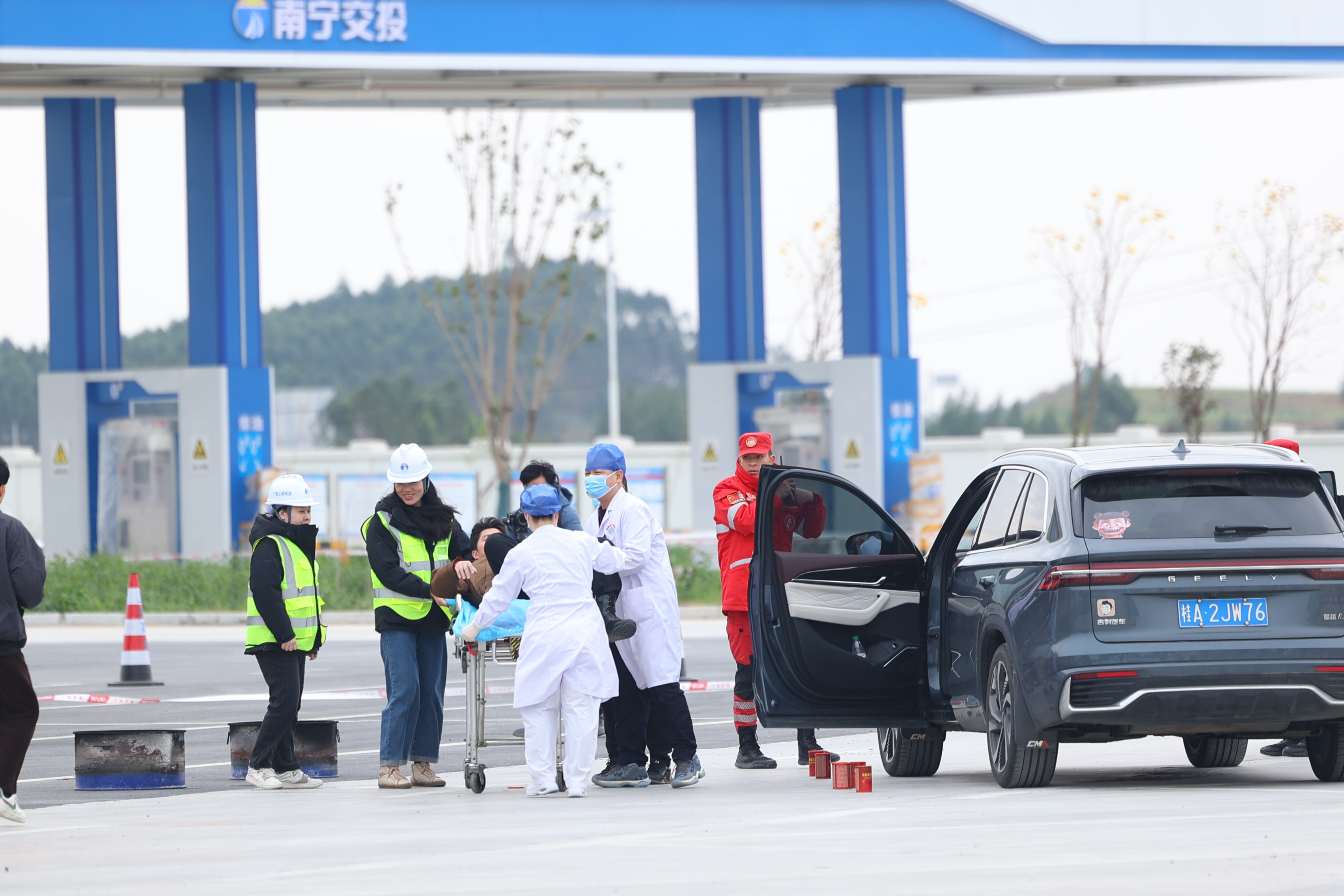 林橫高速開(kāi)展?;愤\(yùn)輸泄漏突發(fā)事故應(yīng)急聯(lián)合救援演練