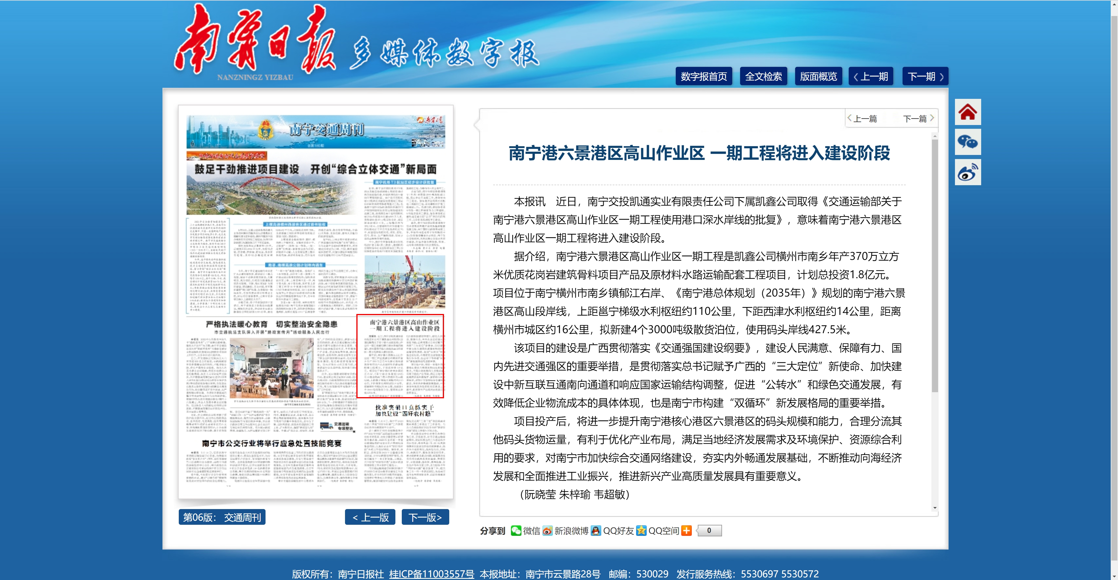 南寧港六景港區(qū)高山作業(yè)區(qū)一期工程將進(jìn)入建設(shè)階段
