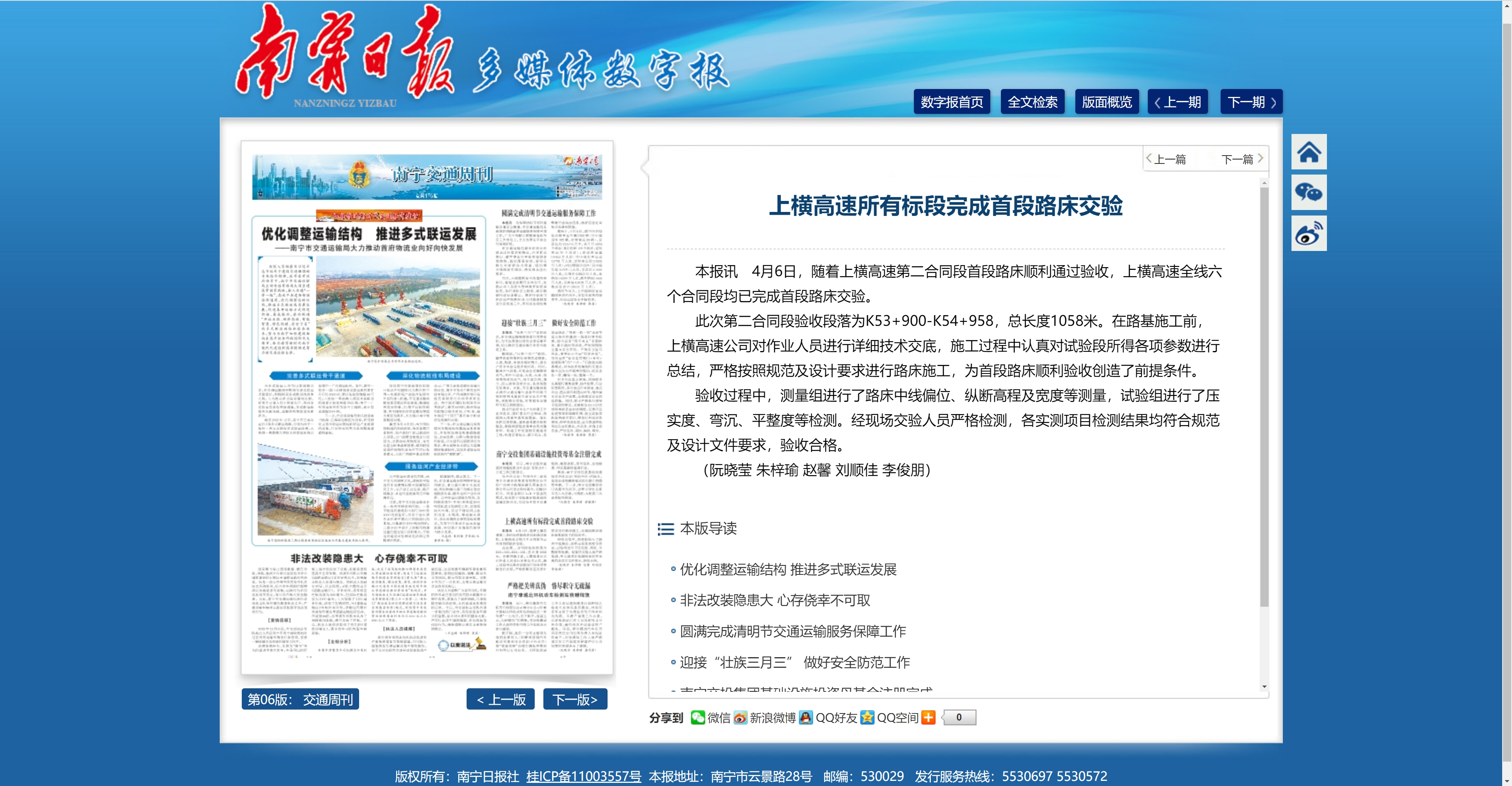 上橫高速所有標(biāo)段完成首段路床交驗(yàn)