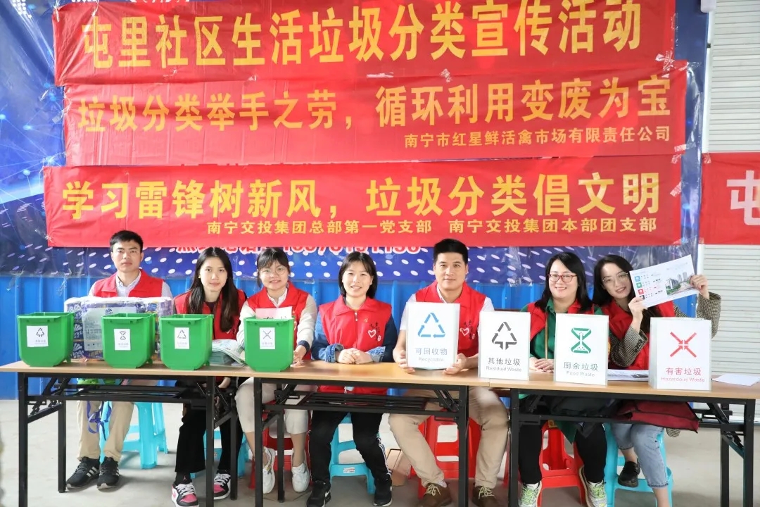 學(xué)習(xí)雷鋒精神 志愿服務(wù)滿綠城——南寧交投集團(tuán)本部黨員團(tuán)員到青秀區(qū)屯里社區(qū)開(kāi)展垃圾分類宣傳活動(dòng)